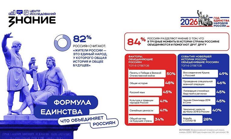 Всероссийский телефонный опрос был проведен центром исследований Общества «Знание» в январе 2026 года. В исследовании приняли участие 1600 человек в возрасте 18 лет и старше, проживающих более чем в 80 регионах страны.