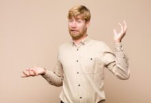 человек разводит руками в недоумении перед столом